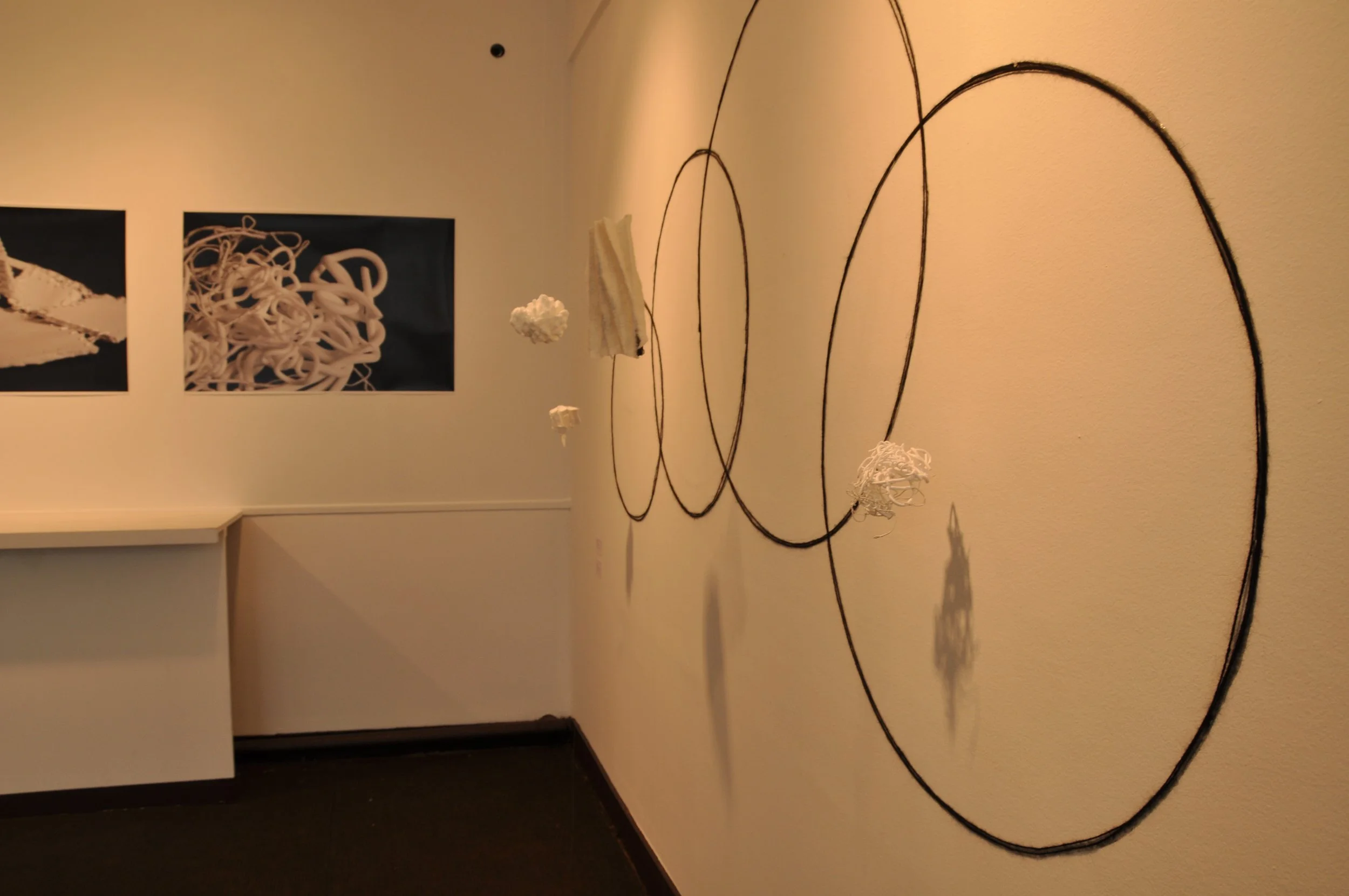Jouant sur le mouvement du corps et les matières contemporaines, Elfie Poiré investit la galerie Sparts à Saint-Germain-des-Prés avec une performance pour sa toute première exposition personnelle. Cette exposition est consacrée aux broderies contemporaines de l’artiste, mêlant vidéos, danses, costumes, installations, photographies et objets.