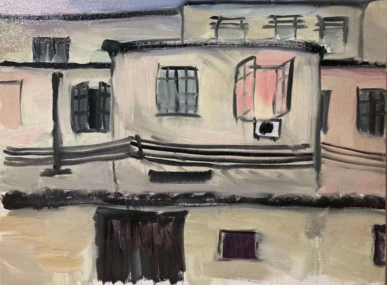 Liwei Xu, Windows in My Lane, oil on canvas, 2021